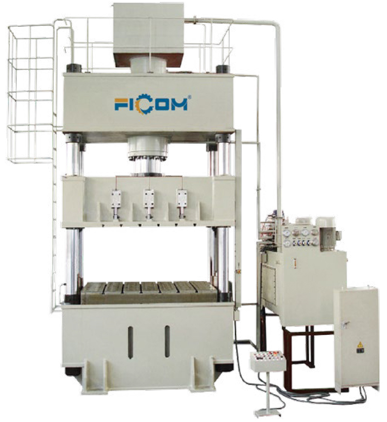 Q1: How does a four-column single-movement hydraulic press improve stamping accuracy?